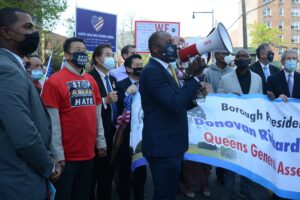 媒体报道说,铁锤袭击事件发生几个小时前,包括纽约市官员在内的几百人聚集在皇后区法拉盛,刚刚谴责了针对亚裔美国人的仇恨袭击。