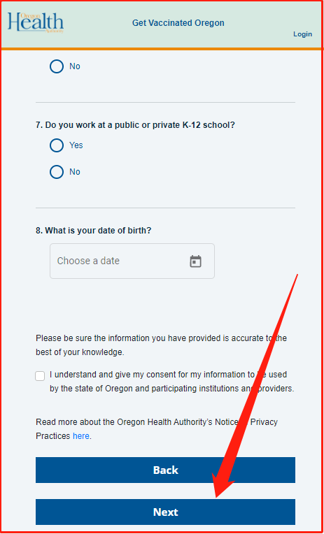 第十步,以后,想回到你的帐户时,进入网址 getvaccinated.oregon.gov ,在右上角登录。