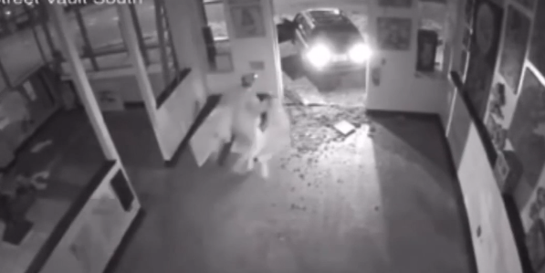 - 小偷在市中心用汽车直接撞门抢劫 2021年10月21日