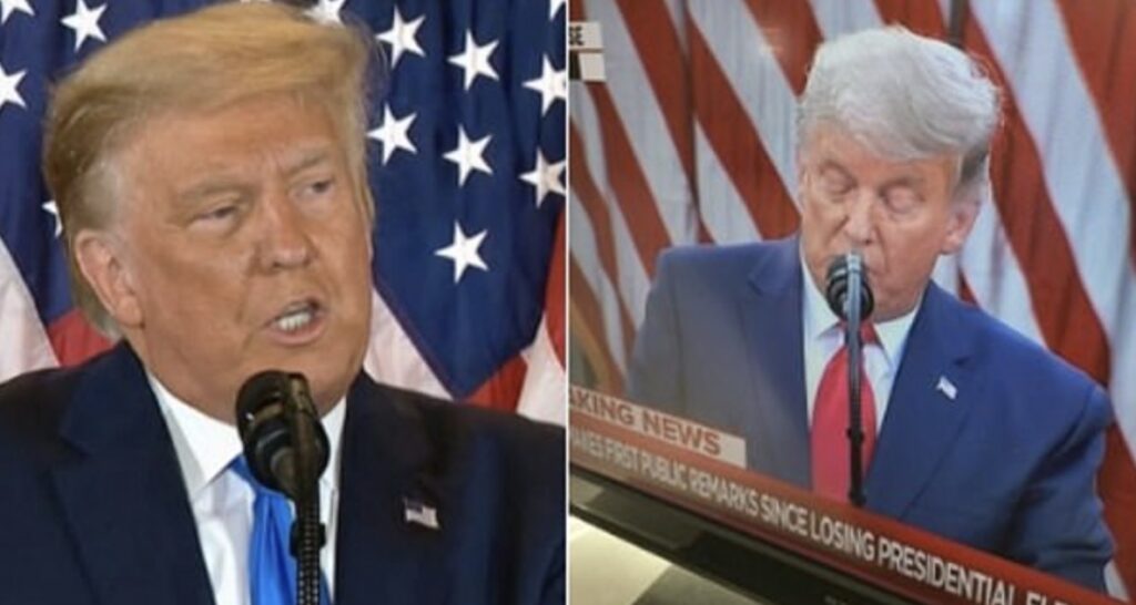 昨天(星期五)是特朗普自大选后首次公开亮相,人们很快发现,特朗普的头发似乎一夜变白…
