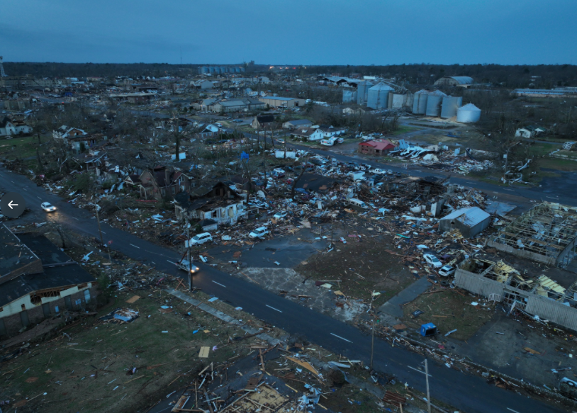 利奇维尔市(Leachville),市中心大部分被摧毁,Dollar General商店里面至少一人死亡。