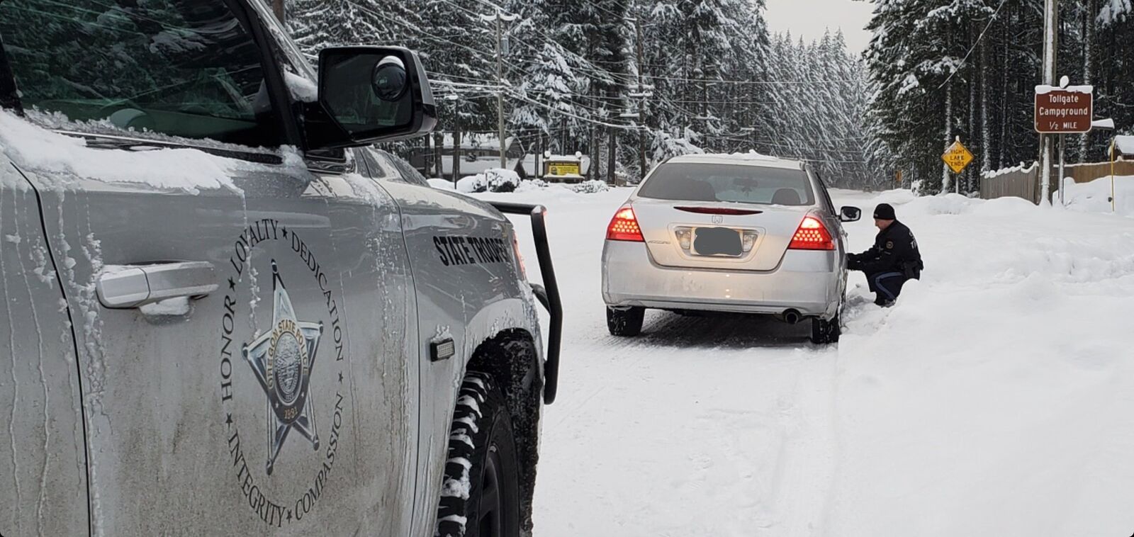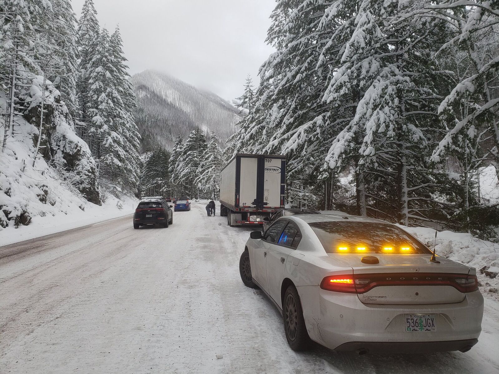 俄勒冈州警方表示:“警察仍然非常忙于处理未使用链条的车辆、废弃车辆、因开得太快而滑倒的车辆等等。”