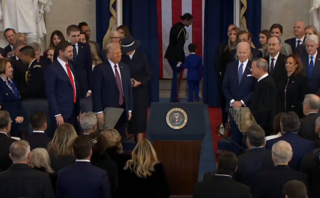 在国会圆形大厅内,特朗普用近40分钟的相对平静且专注的演说回顾了他的使命。他表示,“我被上帝拯救,是为了让美国再次伟大”,并承诺自己将成为“和平缔造者和团结者”。然而,在随后于解放大厅的即兴发言中,特朗普批评了2020年“大选被操控”,并指责前众议院议长南希·佩洛西与国会骚乱相关。