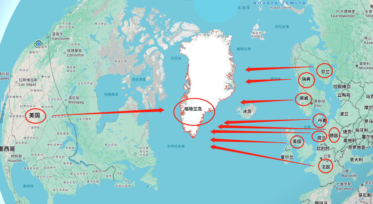 此外,格陵兰的位置极具战略价值:它位于北极圈内,是北美与欧洲之间的桥梁,随着气候变暖,新的北极航道正在出现,这里也成为监控俄罗斯及其他大国活动的重要前哨。