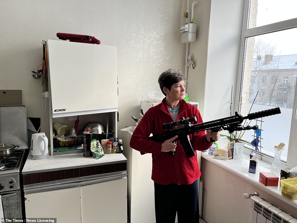 52 岁的三个孩子的母亲 Mariana Zhaglo 也要保护她的国家。她说:“作为一名母亲,我不希望我的孩子长大后仍然受到威胁。我现在来处理这个更好。我们将为乌克兰而战,如果需要开始射击,那么我会开始射击。”