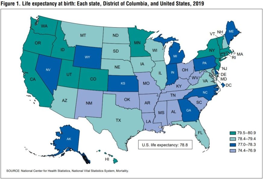 数据还显示,在所有的州,女性的寿命比男性更长。