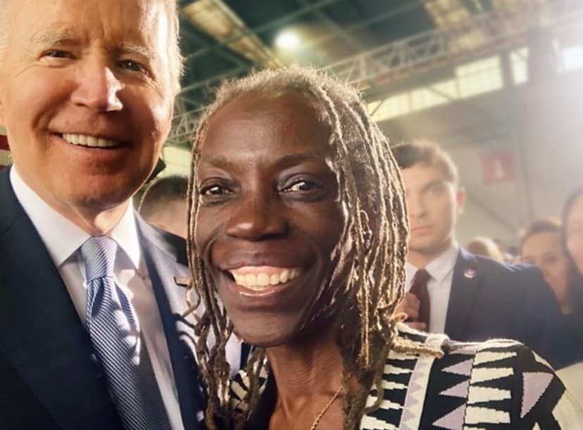 美国总统拜登在这个星期四访问了波特兰,并在机场接见了波特兰乔·安·哈迪斯蒂 (Jo Ann Hardesty)。